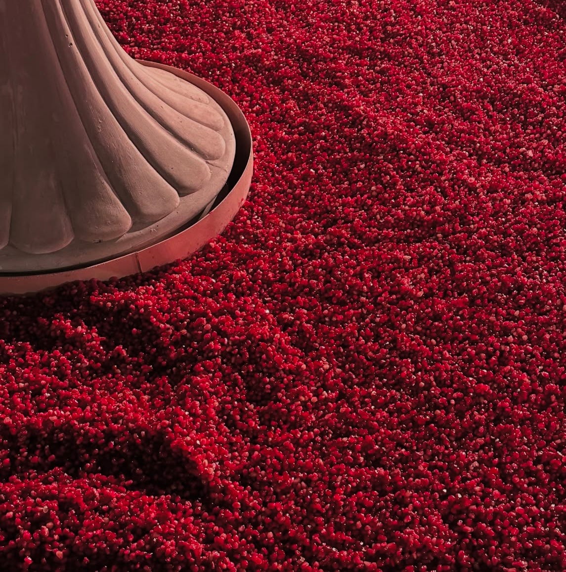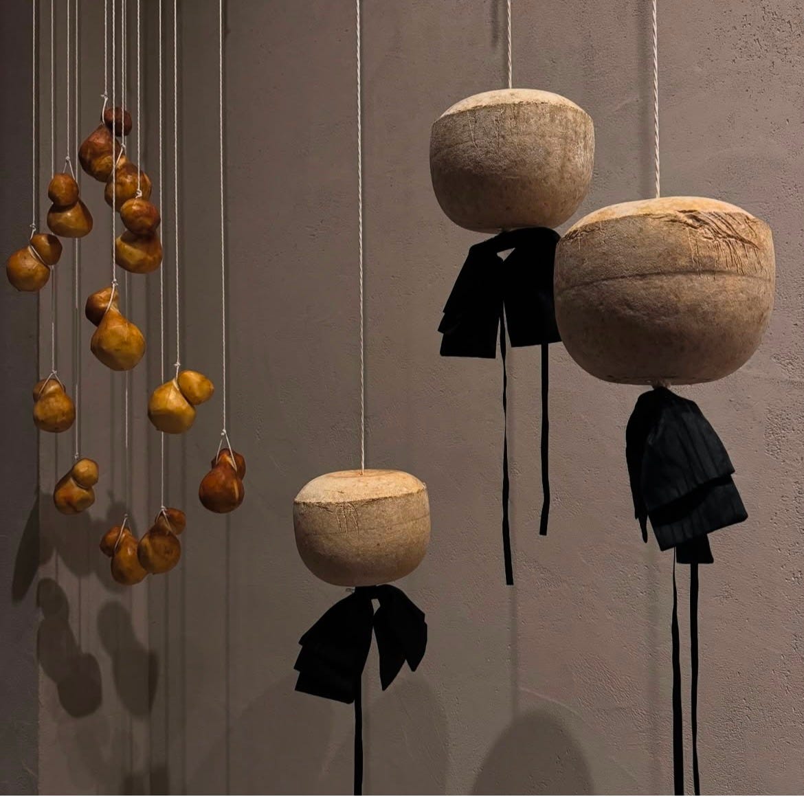 These beautiful installations, and I am in no way undermining their ingenuity, beauty, and all the hard work, are just undeniably wasteful. We are all guilty of the occasional food waste at home, not remembering to freeze something before it goes out of date. But, the difference here is the intention. The elaborate design and minutiae of planning that makes up a design event, the buying of ingredients, the measuring of the string on which we are hanging scamorza (?!). Everything is purposeful and we all know, back of house and behind the scenes, that this food will not be eaten.